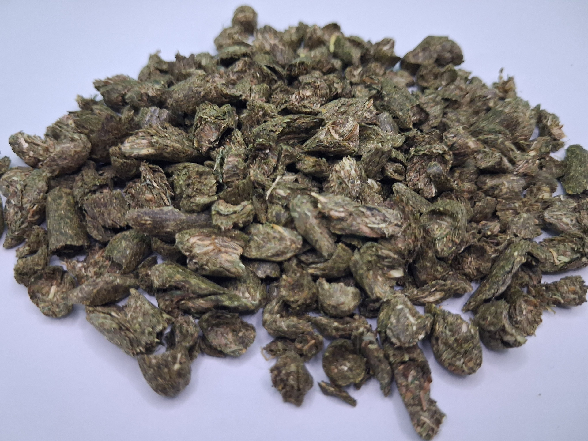 HeuFlocks oder auch Heukrümel sind mechanisch zerkleinerte Heucobs. Also die Herstellung unserer HeuFlocks erfolgt in zwei Schritten. Zuerst wird bestes wiesengetrocknetes Heu zu Heucobs gepresst. Anschließend werden die Heucobs schonend zwischen zwei Walzen zerkrümelt. Durch die schonende Krümelung wird vermieden, dass die HeuFlocks staubarm bleiben.